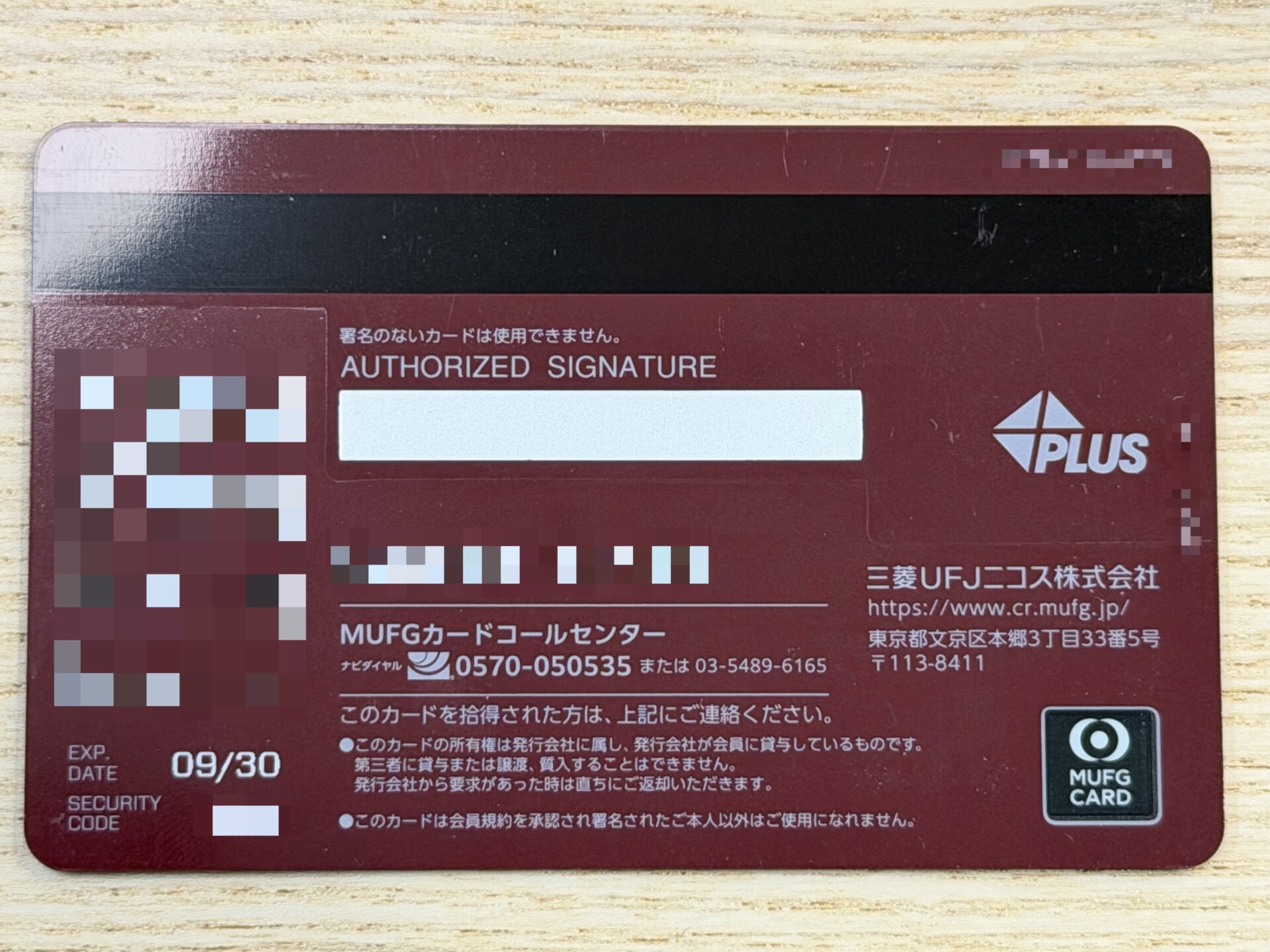 ナンバーレスではないので、カード裏面にカード番号の表記有り。