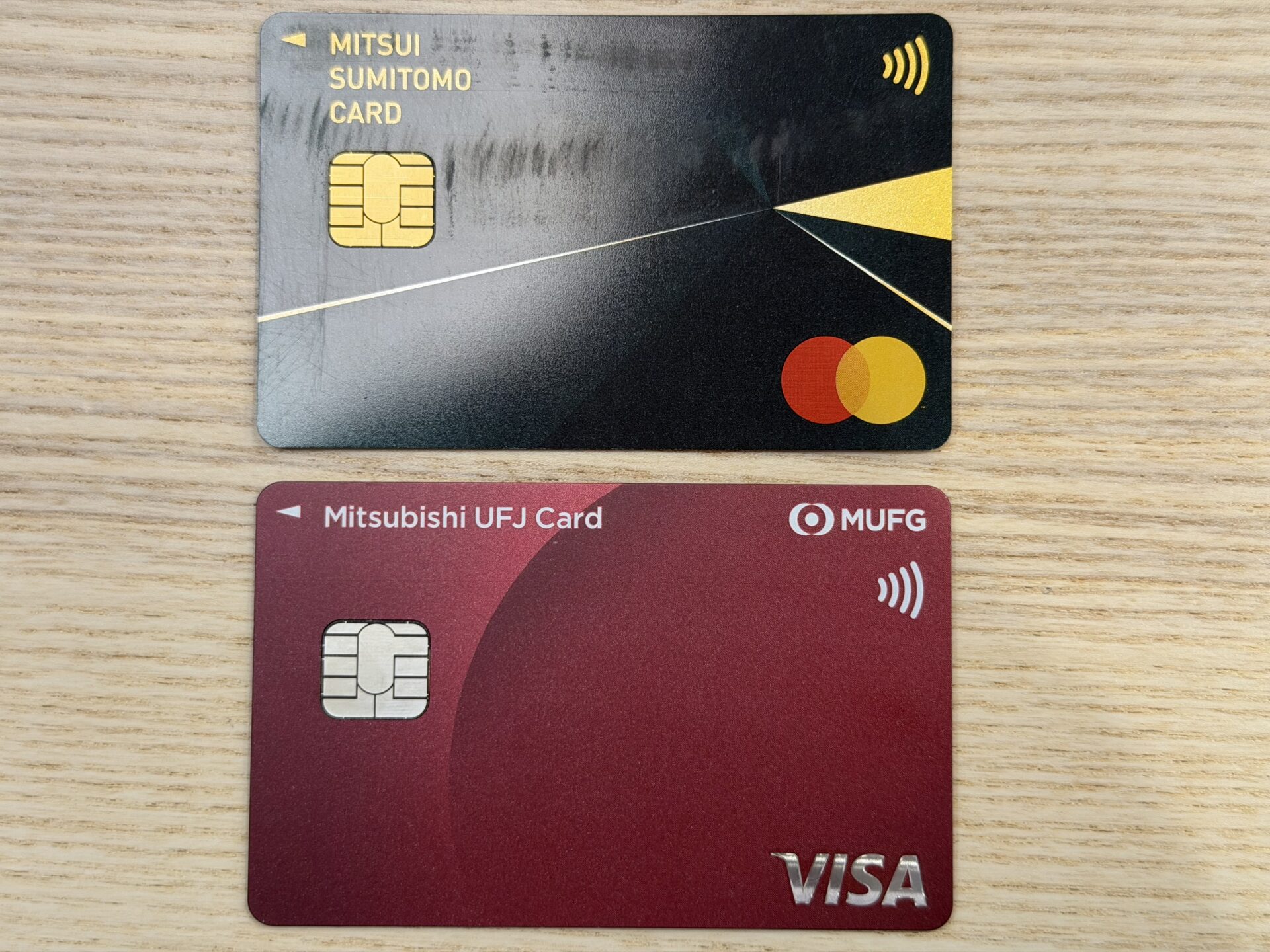 三井住友カードとデザインの比較。(上:三井住友カード 下:三菱UFJカード)シンプルで良いと思う。