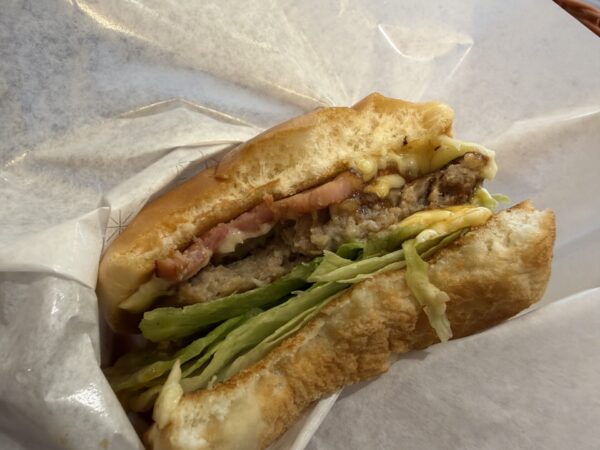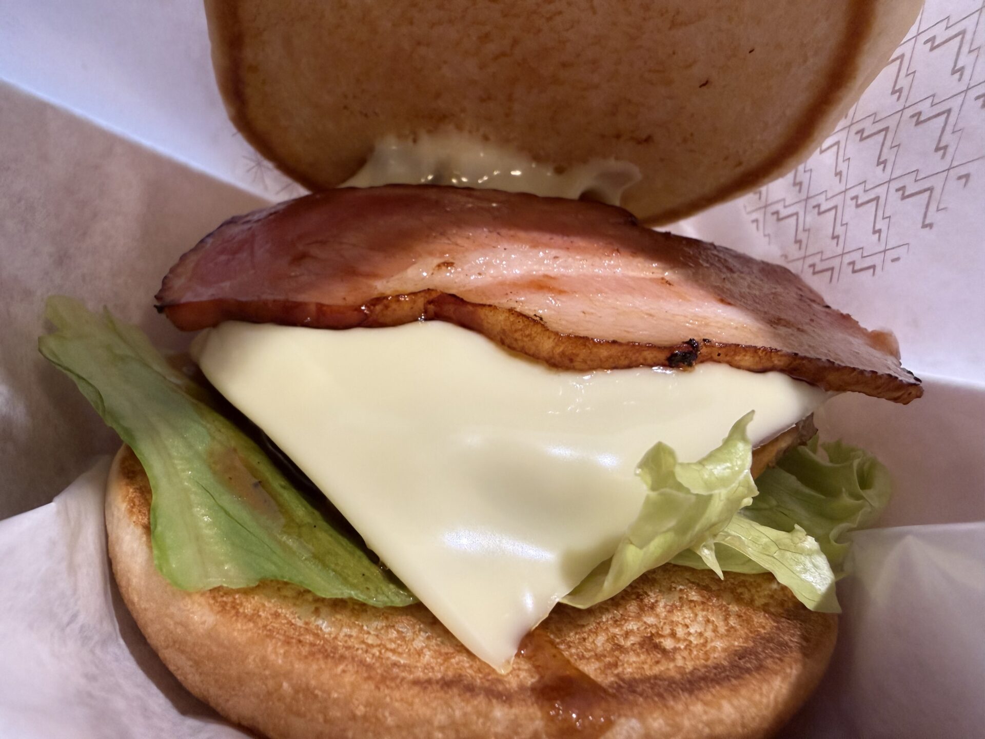 Mさんに慣れていると、ハンバーガーとは本来こういうものと改めて認識される。ベーコンもチーズもしっかりてる。丁寧に作った感があり、まず見た目から満足度高い。